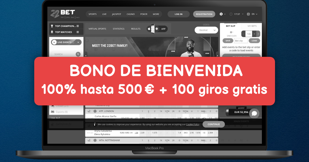 22Bet Casino te da la bienvenida a una experiencia premium en España. Estrena tu cuenta con un bono de bienvenida del 100% hasta 300 € para jugar a tus títulos favoritos. Se aplican términos y requisitos de apuesta. Operamos bajo licencia de Curazao, lo que garantiza seguridad y juego responsable. Disfruta de retiradas ágiles, atención al cliente 24/7 y un lobby con miles de opciones que incluyen tragaperras, juegos de mesa y casino en vivo. Si te apasiona la mesa, descubre el bono de ruleta en vivo con crupieres reales y mesas de Evolution. Los fans de las slots encontrarán tragaperras de pagos rápidos y grandes jackpots progresivos online de estudios top como NetEnt y Pragmatic Play. Juega donde quieras con nuestra web móvil optimizada y app para Android, pensadas para ofrecer un control total. Ingresa y retira con tarjetas bancarias, monederos electrónicos como Skrill y Neteller, transferencias y criptomonedas populares, siempre con procesos seguros y verificados. Únete hoy a 22Bet Casino y disfruta de una experiencia pensada para jugadores de España.